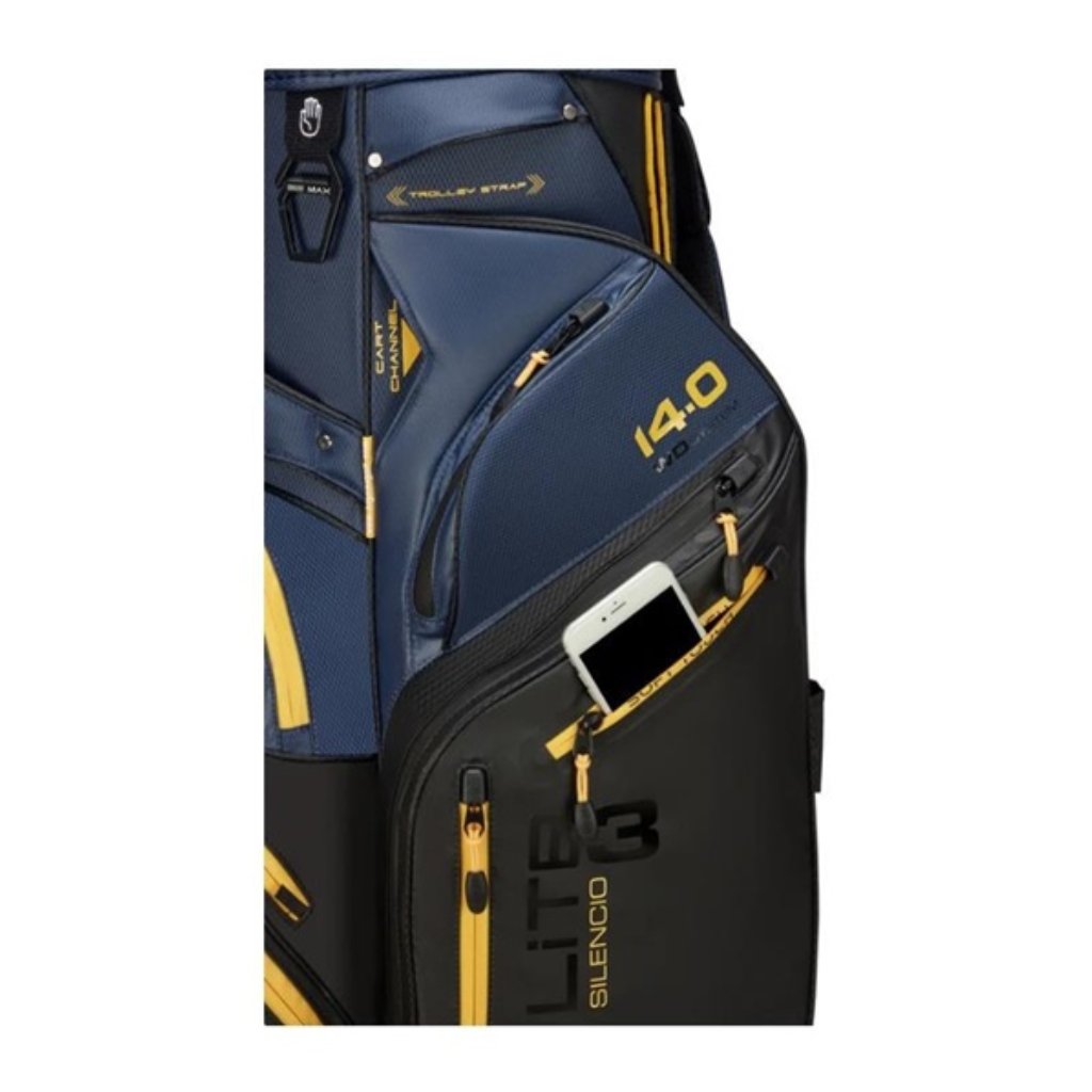 Big Max Dri Lite Silencio 3 patří mezi nejpropracovanější cart bagy ve své třídě. Kombinuje maximální stabilitu holí, vysokou voděodolnost a promyšlené uspořádání kapes, které ocení každý náročný hráč.