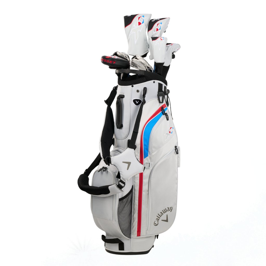 Železa 6–9 spolu s pitching, approach a sand wedgemi mají tvar game-improvement, což zajišťuje snadné zvednutí míče, vysokou kontrolu a pohodlný pocit při každém úderu. Odyssey DFX putter s ikonickým tvarem V Line Fang poskytuje zlepšené zarovnání a jistotu na greenu. Součástí setu je také lehký Callaway stand bag s praktickým členěním a prostor pro veškeré vybavení, takže pokrývá celou hru od tee až do jamky.