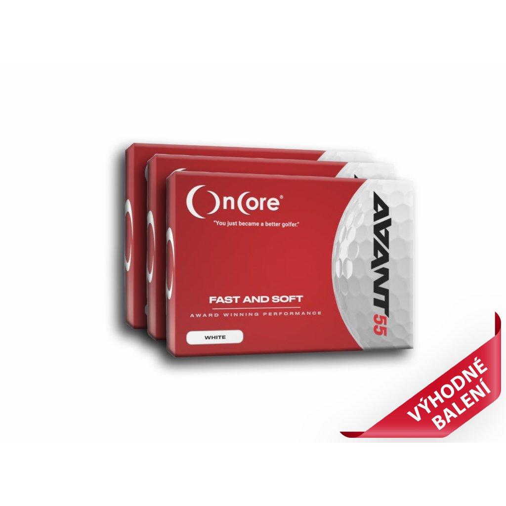 Golfové míčky OnCore AVANT 55 se vyznačují velmi měkkým vnitřním jádrem, které přidává obvodové zatížení a umožňuje rovnější a delší rány z odpaliště.