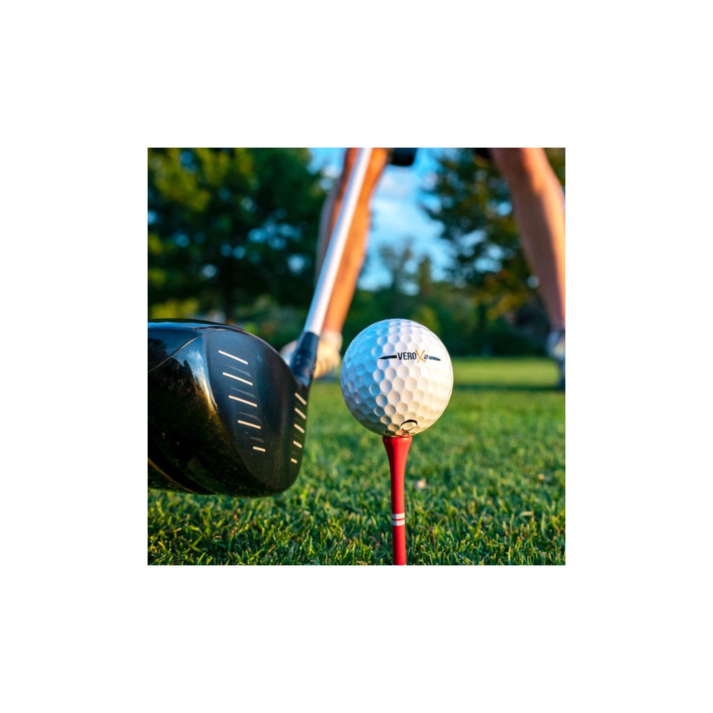 VERO X2 nabízí stejně efektivní snížení spinu u odpalů a průnikovou trajektorii proti větru, což zajišťuje větší vzdálenost a precizní přesnost při odpalech. Míček je navržen pro hráče s vysokou rychlostí švihu a jeho čtyřdílná konstrukce s kompresí 95 zajišťuje optimalizovaný spin a přesnost s železy a vynikající zastavení na greenech s wedgemi. Vyroben s kovovou vložkou a tenkým povrchem z odlévaného uretanu spojeným nano-inženýrskou přechodovou vrstvou. Speciální technologie obvodového zatížení výrazně snižuje boční spin a zajišťuje stabilní let i proti větru.