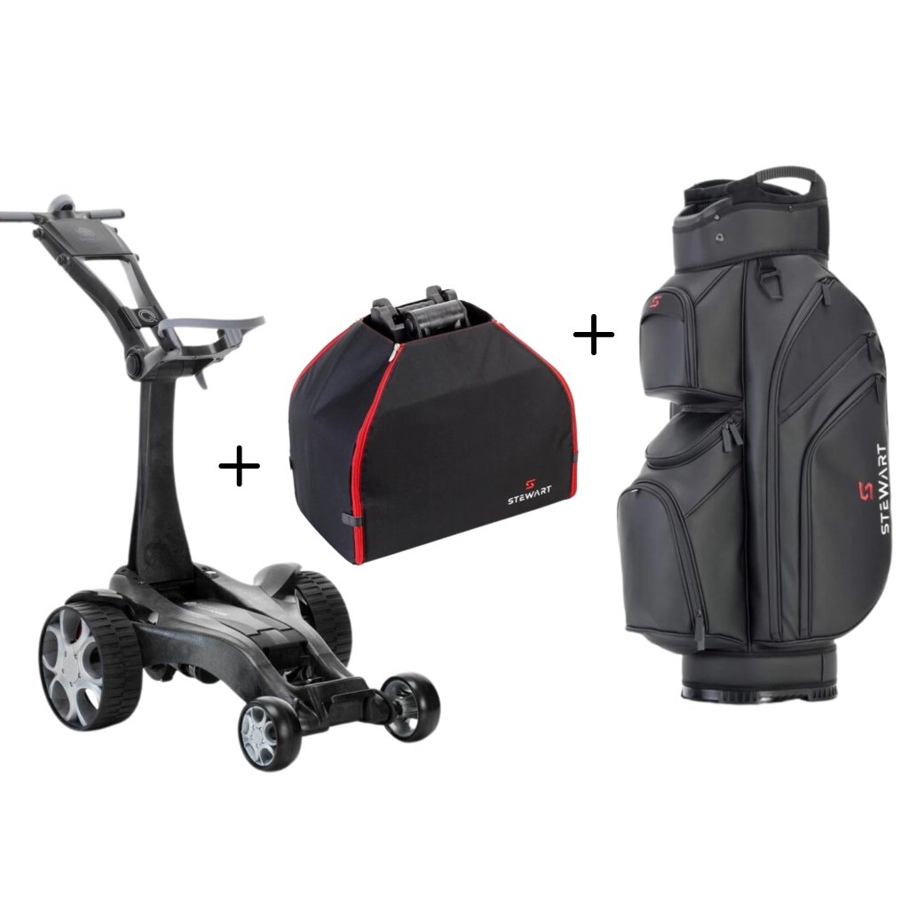 Stewart Q Follow elektrický golfový vozík černý +Stewart Golf taška na vozík + Stewart Golf Nero golfový cart bag