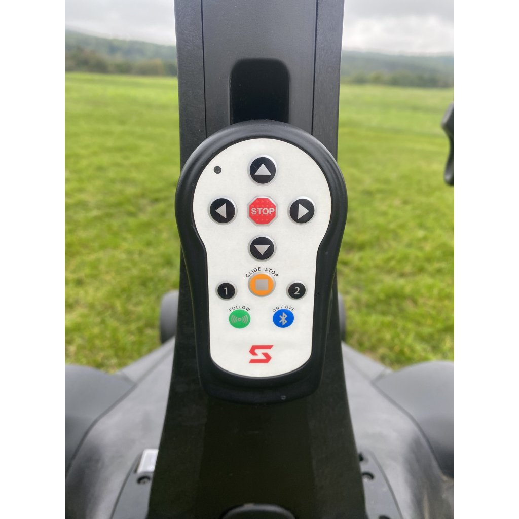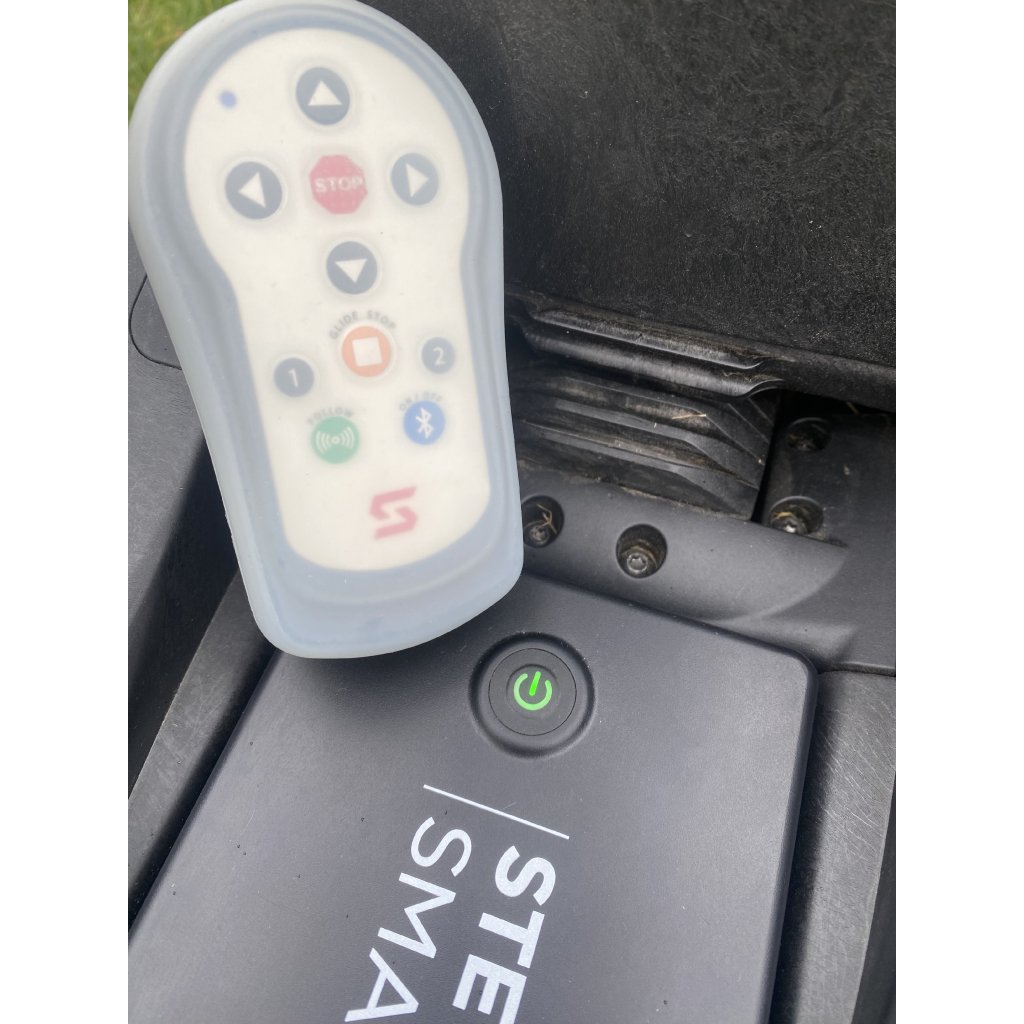 Stav: Velmi zachovalý elektrický vozík Stewart Q-Follow, včetně baterie, nabíječky pro baterii a dálkový ovladač, držák telefonu.